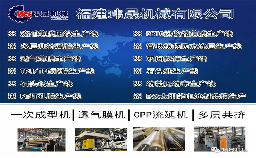 福建瑋晟機械有限公司,專業從事塑料薄膜產品生產線的研發與制造,主營產品包括流延膜機組,PE 透氣膜機組和MOPET熱收縮膜機組等各類薄膜專業設備。公司的技術團隊擁有10年的從業應用經驗,瑋晟公司立足高起點,專門研發制造專業高速流延膜機組,面向國內外客戶需求。
