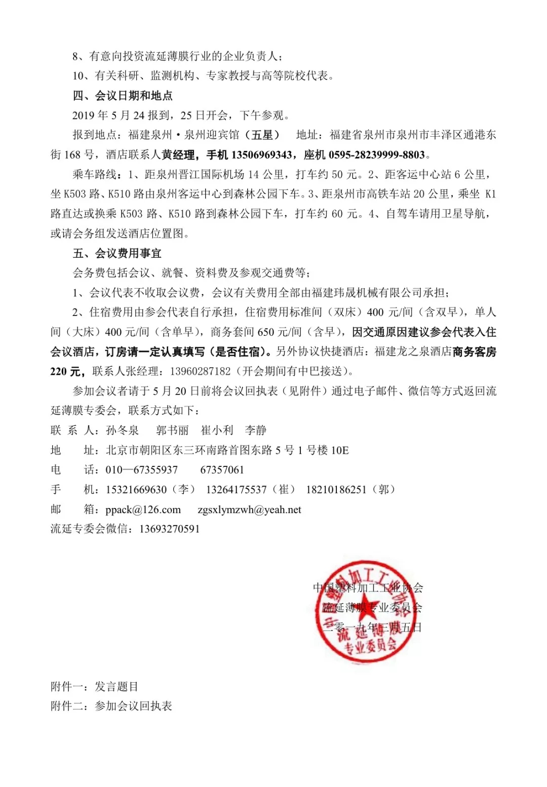 關(guān)于召開2019 第五屆特種流延薄膜技術(shù)交流與現(xiàn)場演示會(huì)的通知