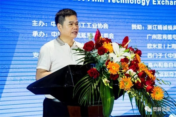 湖北慧獅塑業股份有限公司副總經理李旭東先生發表了《流延保護膜分類與應用探討》的講話。